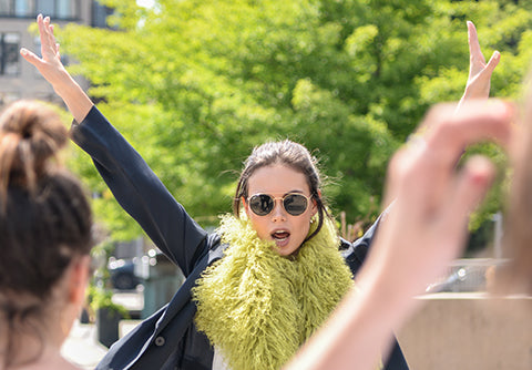 At HCT we are proudly made in Canada by few and expert local hands. I cut each scarf and fur by hand, my collection is sewn in a small sustainable facility in downtown Toronto and the hems of our signature piece, the HCT silk carre´ are hand rolled by a local expert needleworker. All of my silk is locally digitally printed.